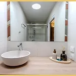 Diese Unterkunft verfügt über eine getrennte Toilette, eine Dusche und eine Waschmaschine für Ihren Komfort. Das Badezimmer ist mit Handtüchern ausgestattet.